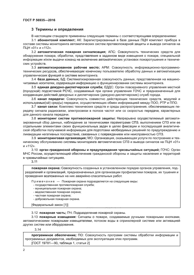 Положения настоящего стандарта также распространяются на подразделения пожарной охраны, организации федеральной противопожарной службы МЧС России, уполномоченные на прием сообщений о пожарах по телефонному номеру, назначенному федеральным органом исполнительной власти в области связи, а также на ЕДДС, функционирующие на базе телефона «112» в части размещения и эксплуатации ПЦН как составного элемента системы мониторинга
