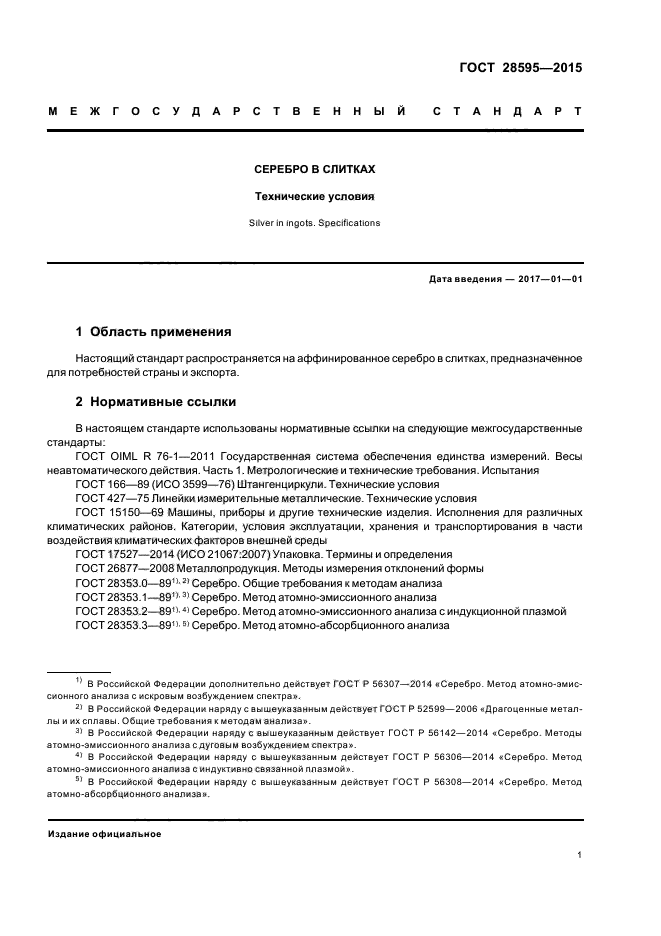 | Область и условия применения: | Настоящий стандарт распространяется на аффинированное серебро в слитках, предназначенное для потребностей страны и экспорта |