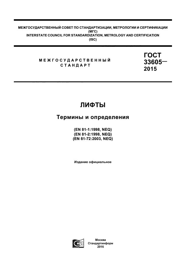 | Область и условия применения: | Настоящий стандарт устанавливает основные термины и определения в области лифтов |