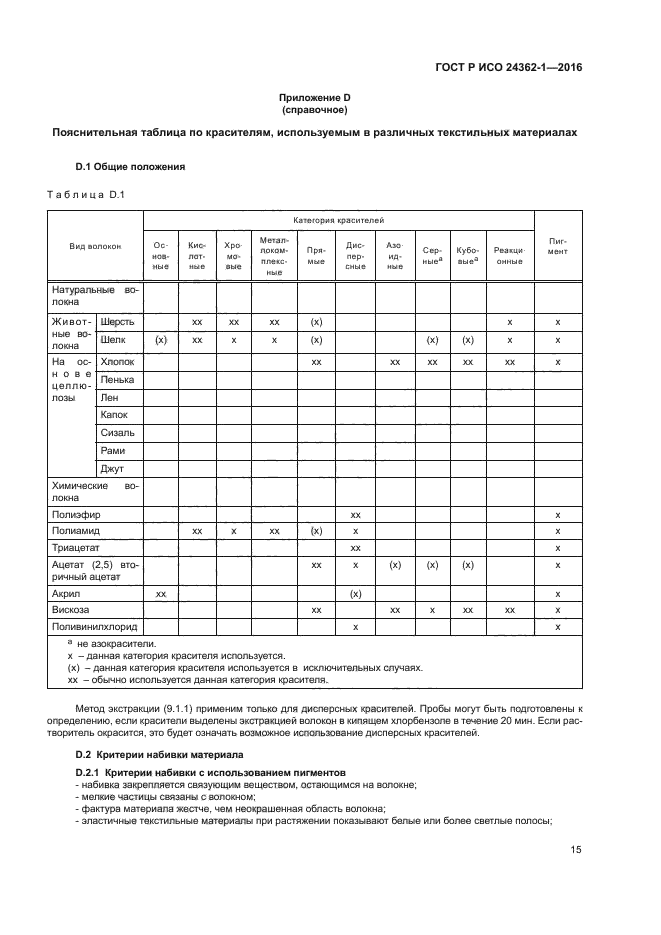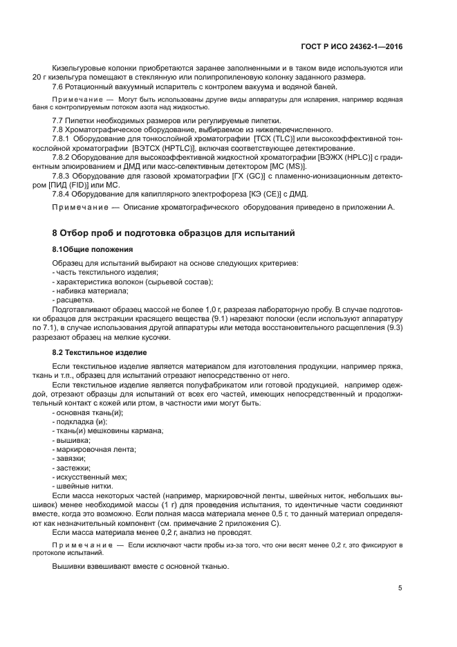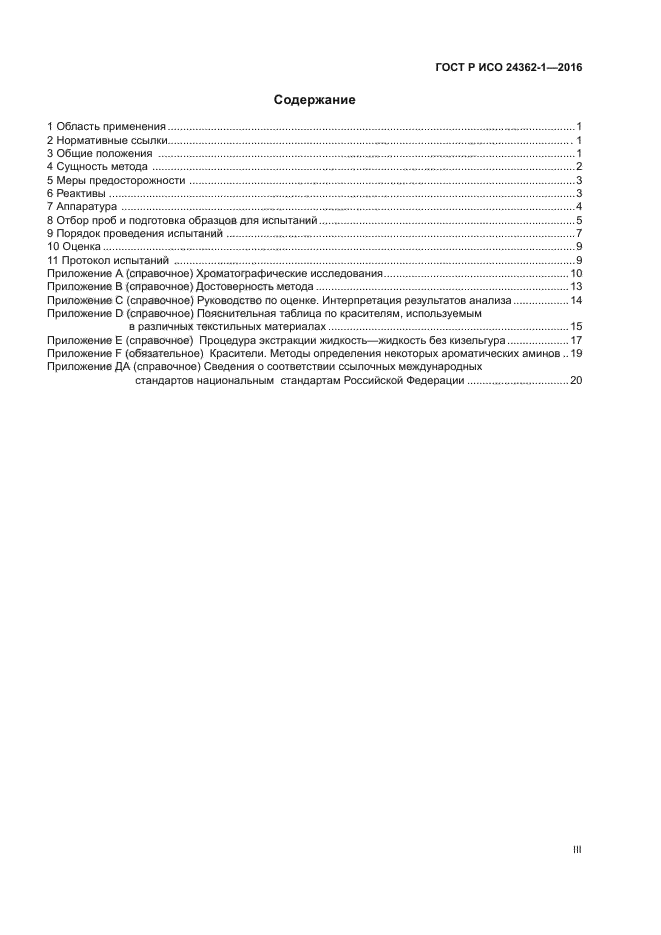 Настоящий стандарт описывает процедуру обнаружения использования некоторых азокрасителей, запрещенных к применению при изготовлении или обработке определенных текстильных материалов и доступных восстановителю в процессе экстракции или без нее