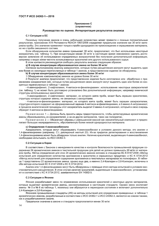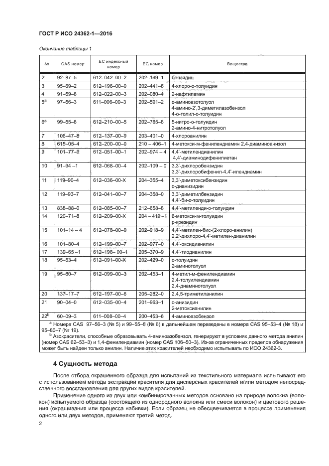 | Название рус.: | Материалы текстильные. Методы определения некоторых ароматических аминов, выделяемых из азокрасителей. Часть 1. Обнаружение использования некоторых азокрасителей, выделяемых из волокон при экстракции или без экстракции |