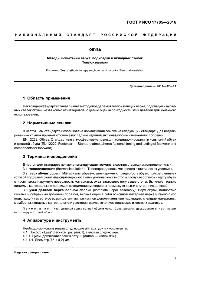 Настоящий стандарт устанавливает метод определения теплоизоляции верха, подкладки и вкладных стелек обуви, независимо от материала, с целью оценки пригодности этих деталей для конечного использования