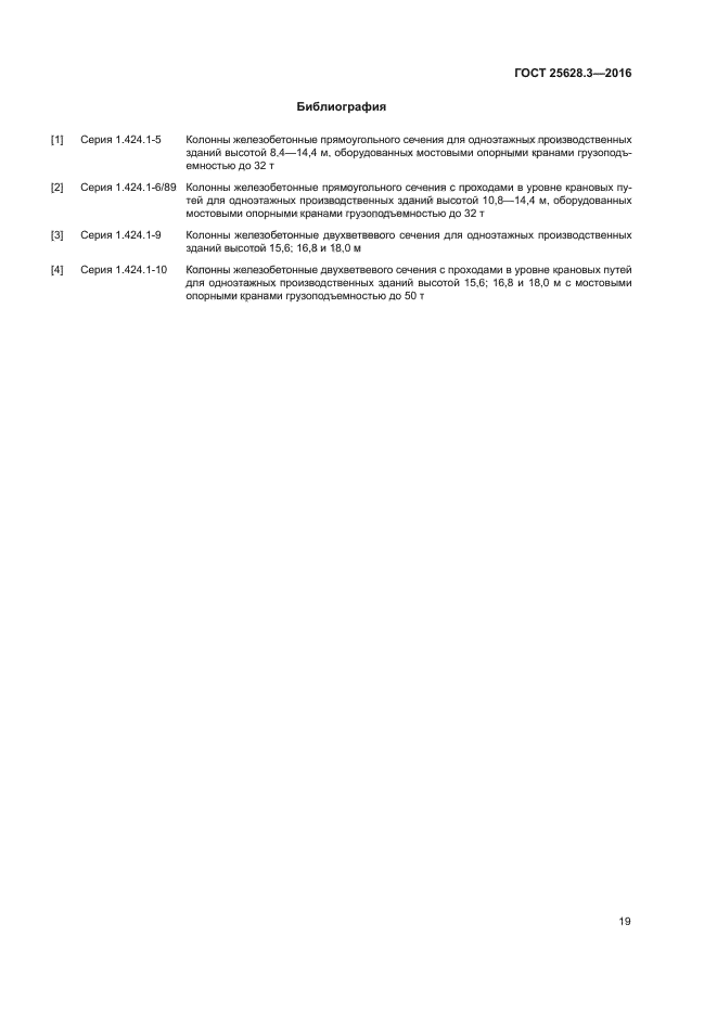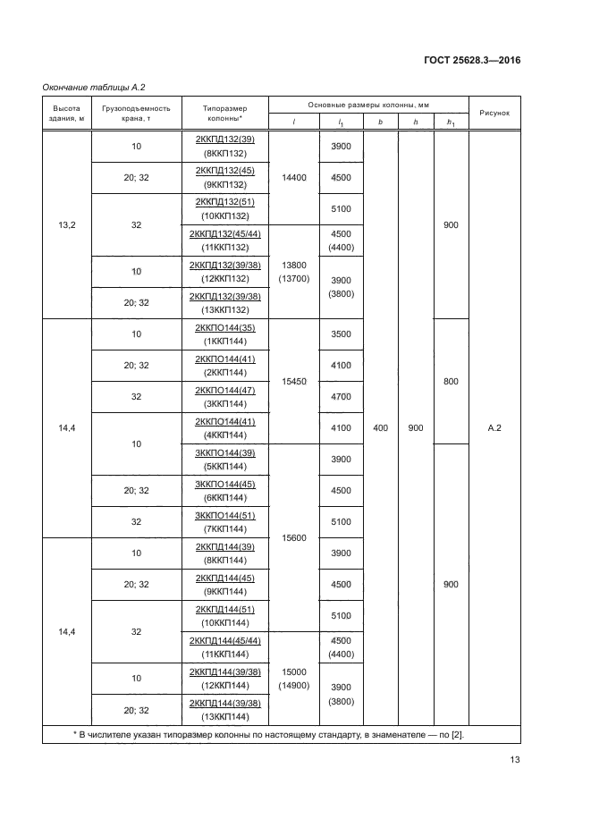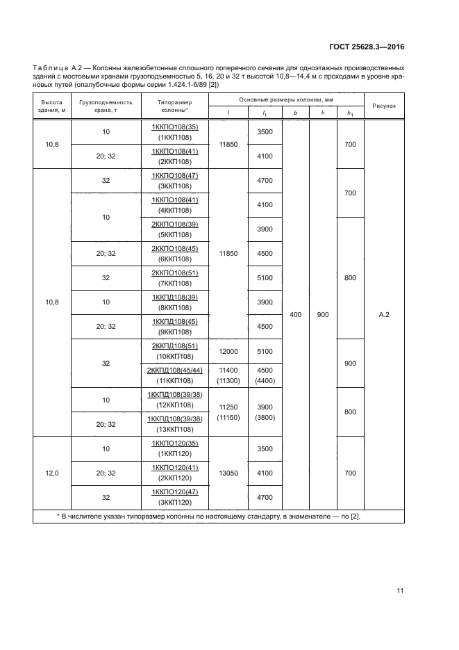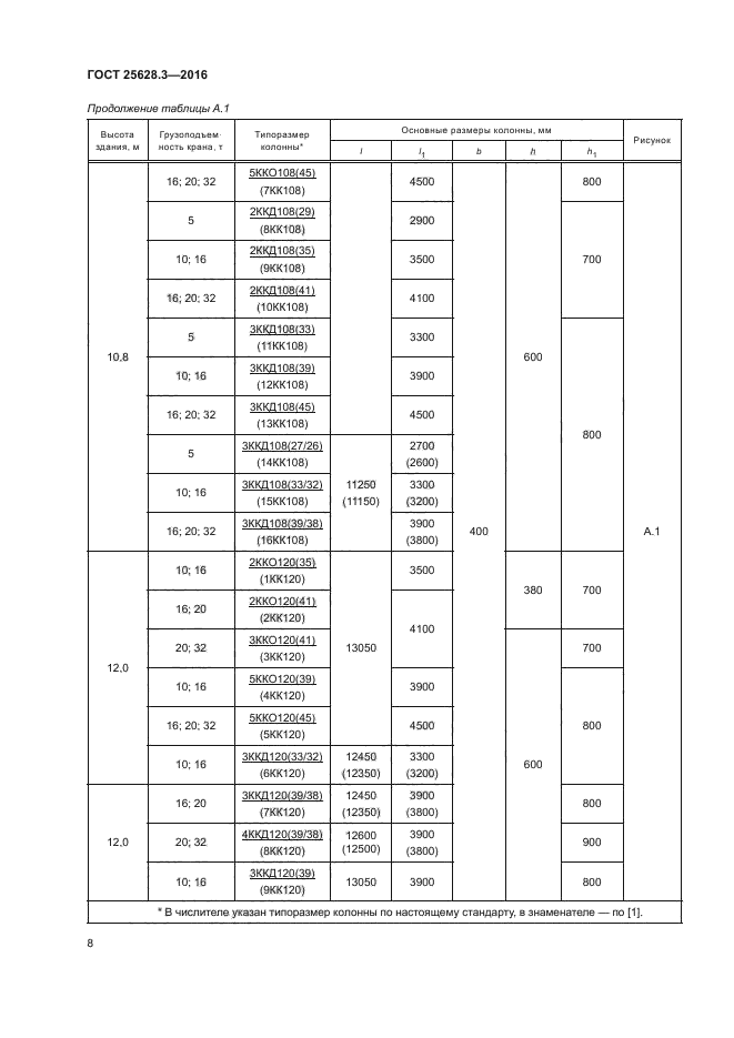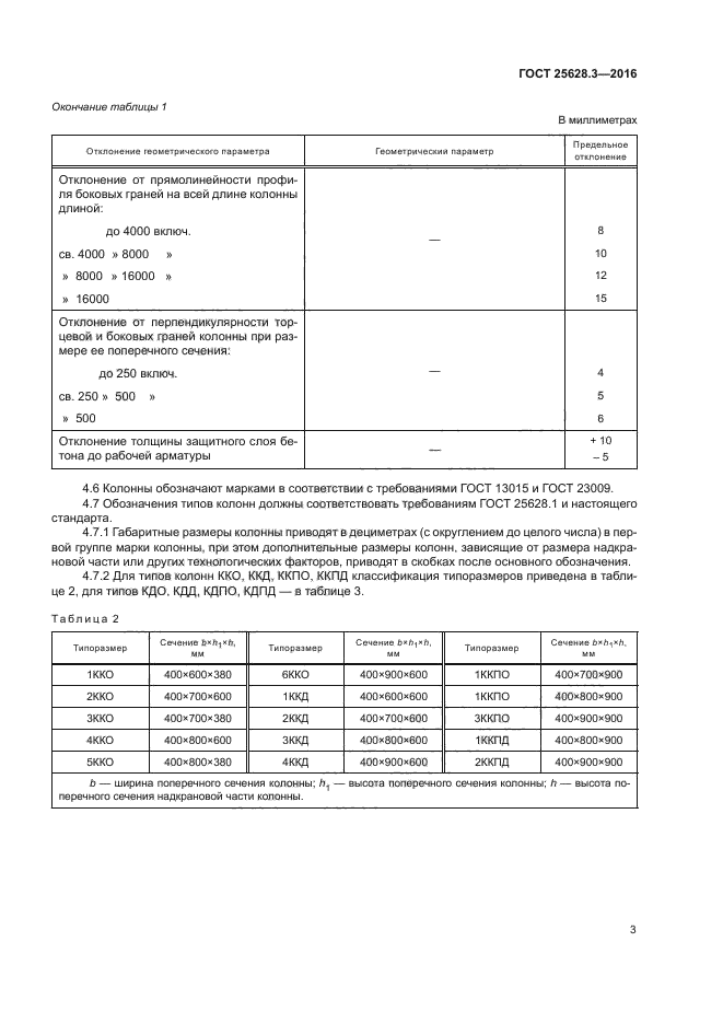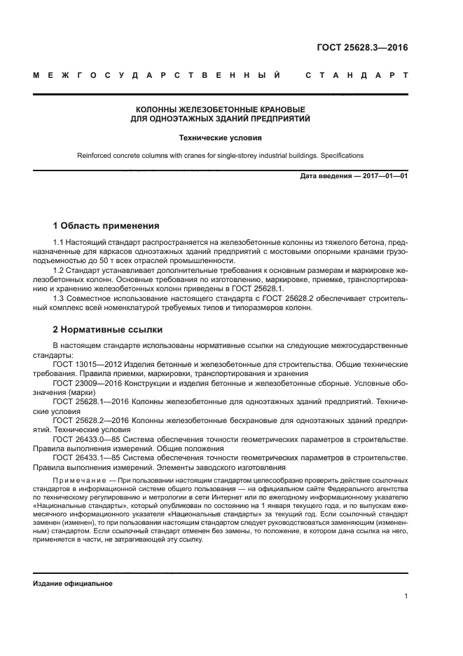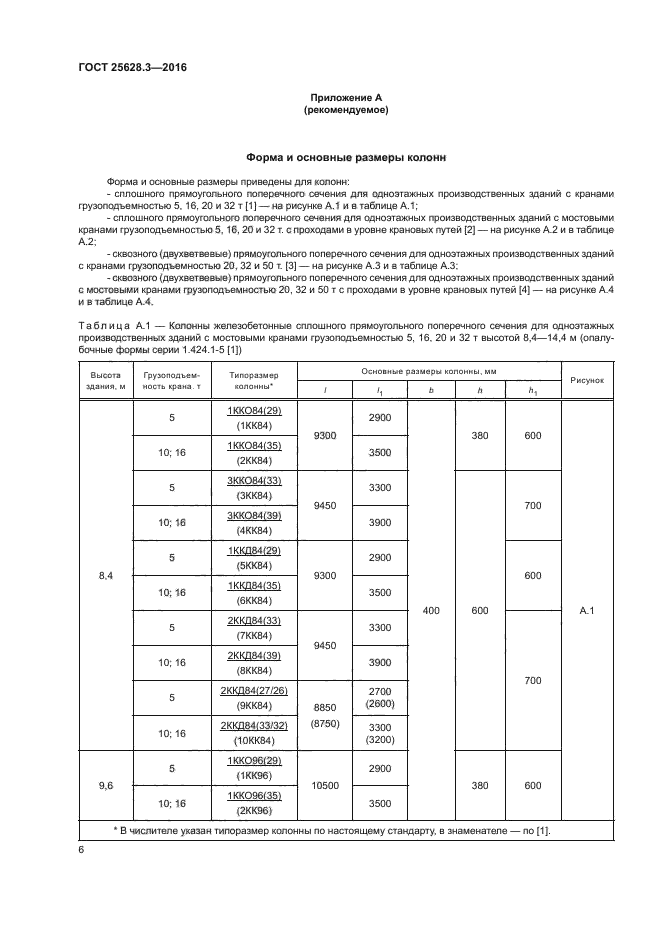 Совместное использование настоящего стандарта с ГОСТ 25628.2 обеспечивает строительный комплекс всей номенклатурой требуемых типов и типоразмеров колонн