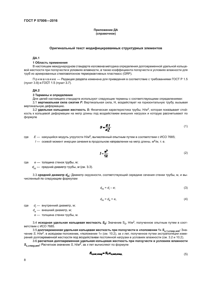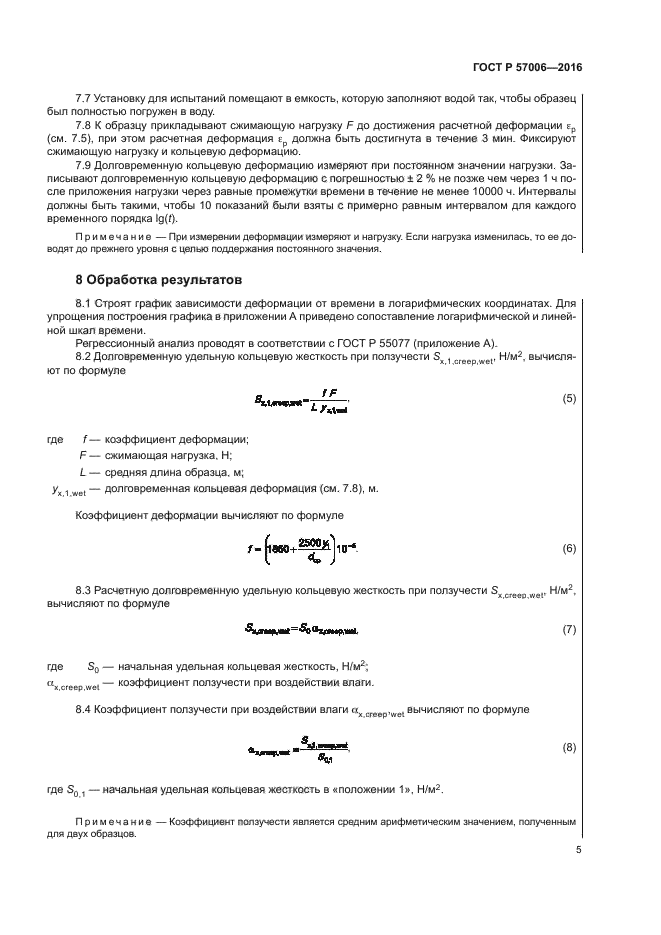 Настоящий стандарт распространяется на трубы и детали трубопроводов из реактопластов, армированных стекловолокном, и устанавливает метод определения долговременной удельной кольцевой жесткости при ползучести и коэффициента ползучести при воздействии влаги