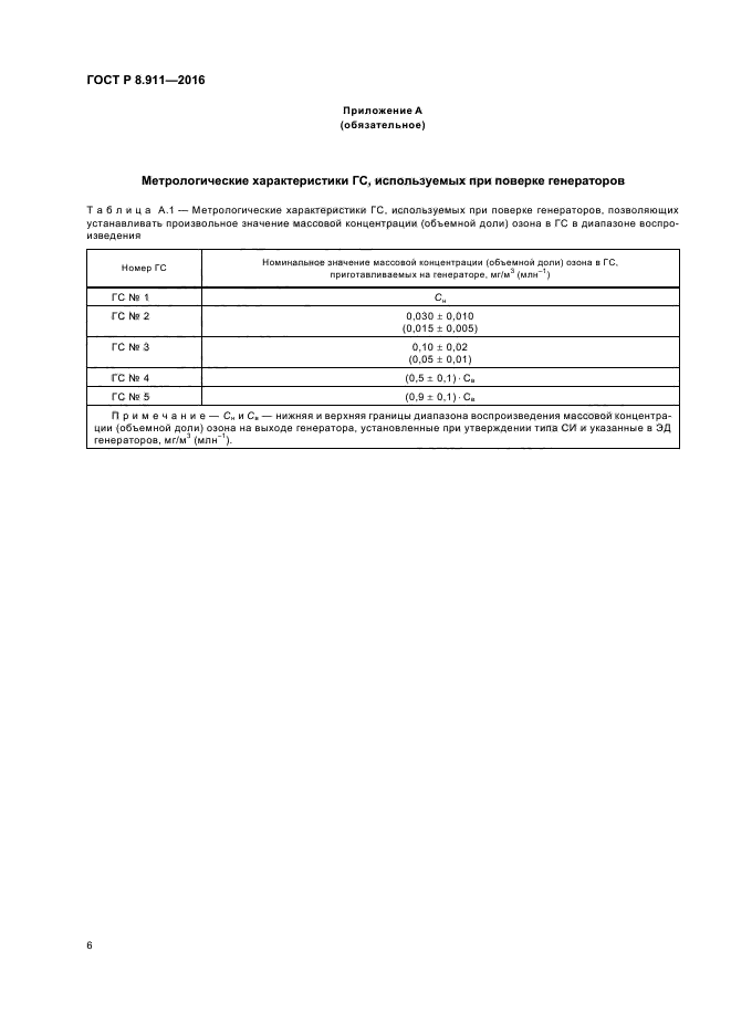 Настоящий стандарт распространяется на генераторы озона в воздухе - рабочие эталоны 1 и 2 разряда по ГОСТ 8.578, предназначенные для приготовления газовых смесей, используемых при проведении поверки и испытаний газоанализаторов озона, в том числе в целях утверждения типа средств измерений, и устанавливает методику их первичной и периодической поверок.