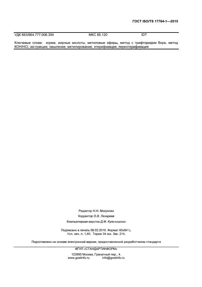 | Название рус.: | Корма, комбикорма. Определение содержания жирных кислот. Часть 1. Приготовление метиловых эфиров |