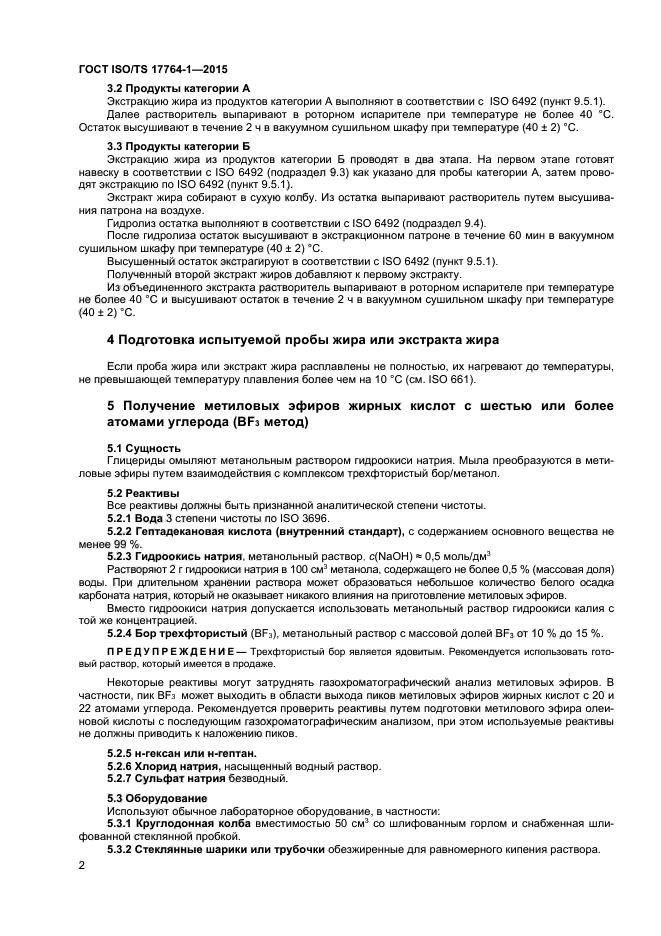 Общий метод с применением трифторида бора (BF3) определяет подготовку метиловых эфиров жирных кислот с шестью или более атомами углерода из жиров, масел и свободных жирных кислот.