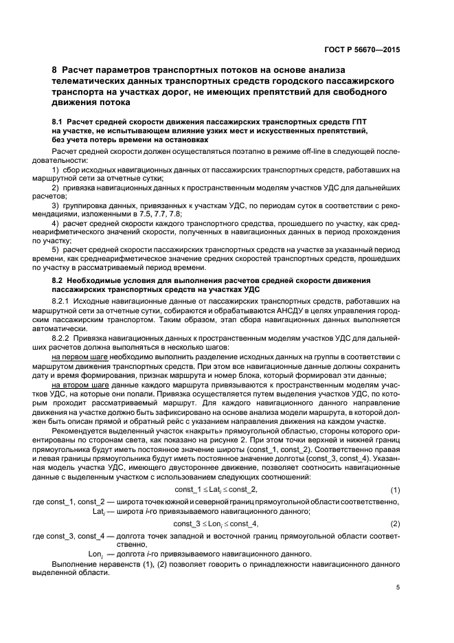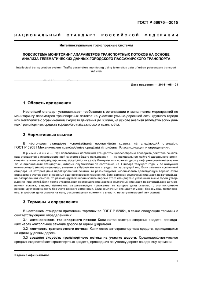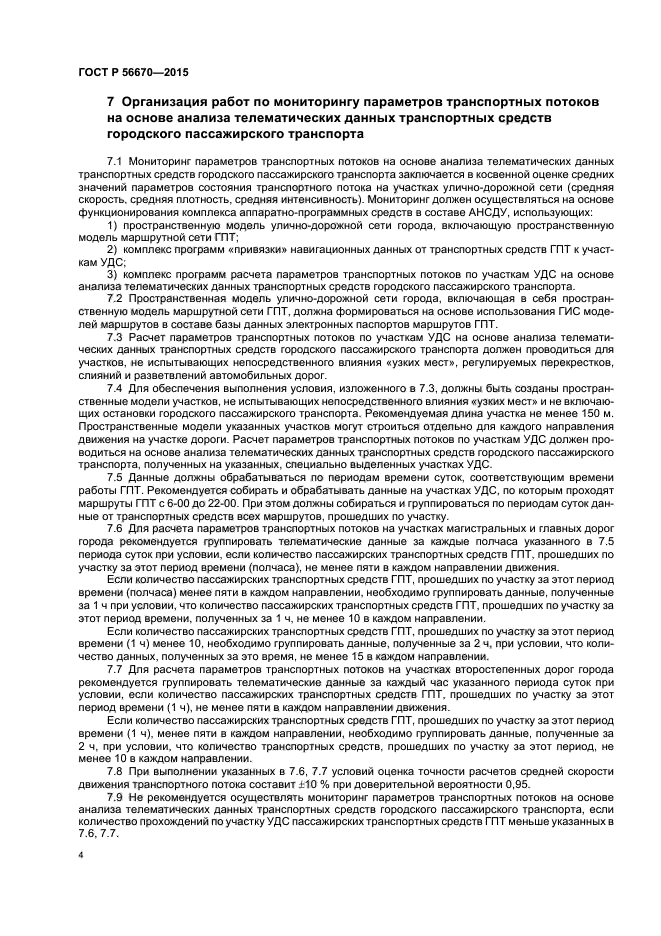 Настоящий стандарт устанавливает требования к организации и выполнению мероприятий по мониторингу параметров транспортных потоков на участках улично-дорожной сети крупного города или мегаполиса с ограничением скорости движения до 60 км/ч, на основе анализа телематических данных транспортных средств городского пассажирского транспорта