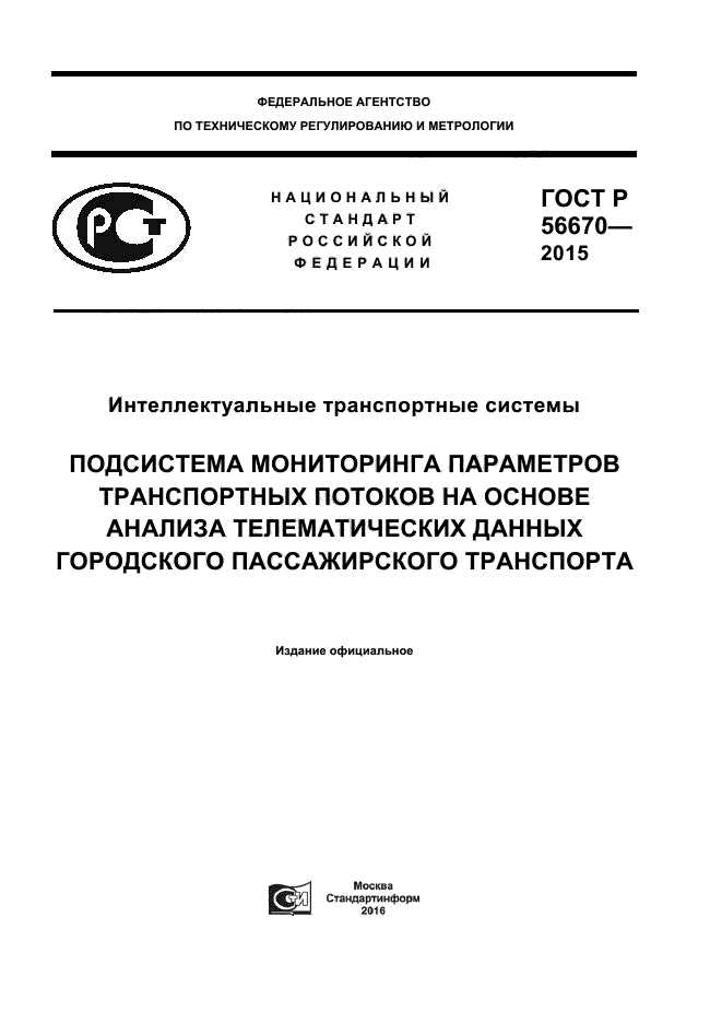 | Название рус.: | Интеллектуальные транспортные системы. Подсистема мониторинга параметров транспортных потоков на основе анализа телематических данных городского пассажирского транспорта |