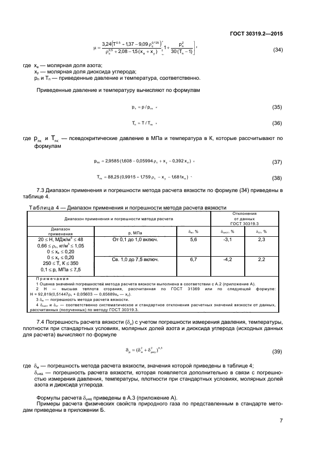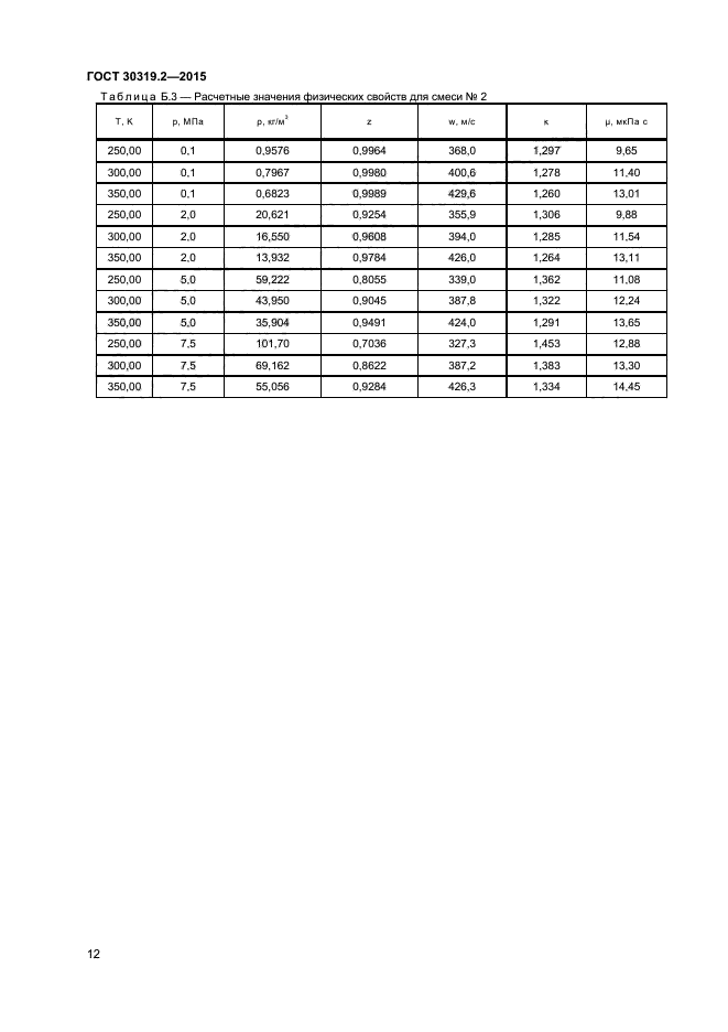 Настоящий стандарт применяют для расчета указанных в 1.1 физических свойств природного газа при давлениях до 7,5 МПа включительно и температурах от 250 до 350 К.