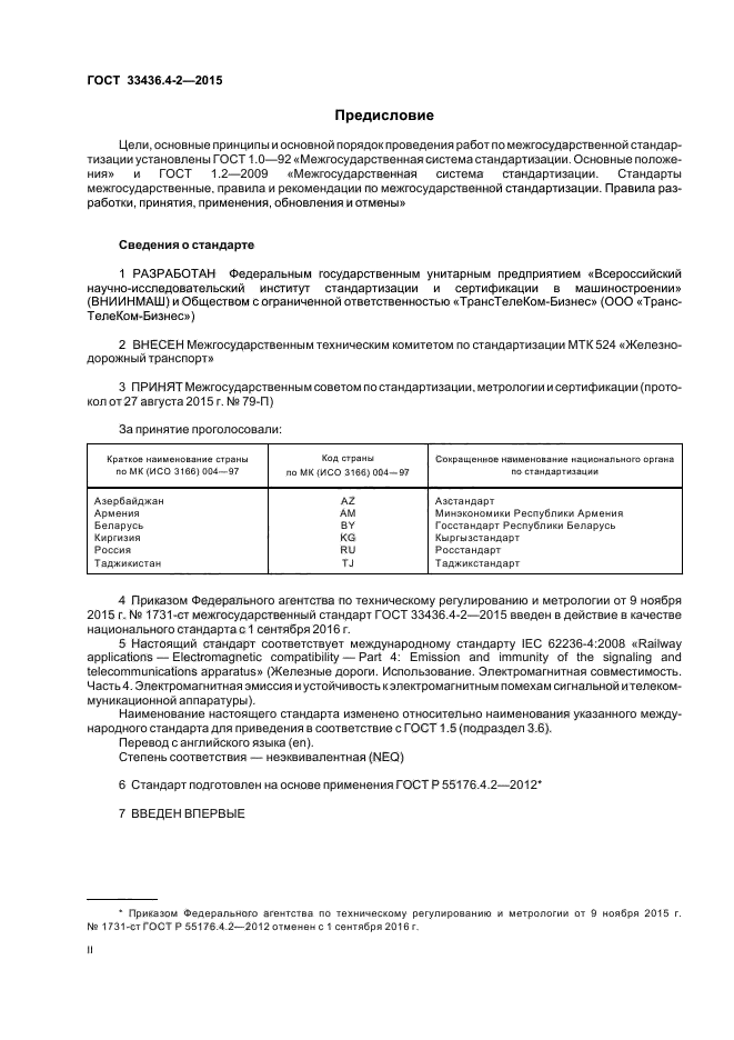 | Название англ.: | Electromagnetic compatibility of technical equipment. Railway systems and equipment. Part 4-2. Emission and immunity of telecommunication equipment. Requirements and test methods |