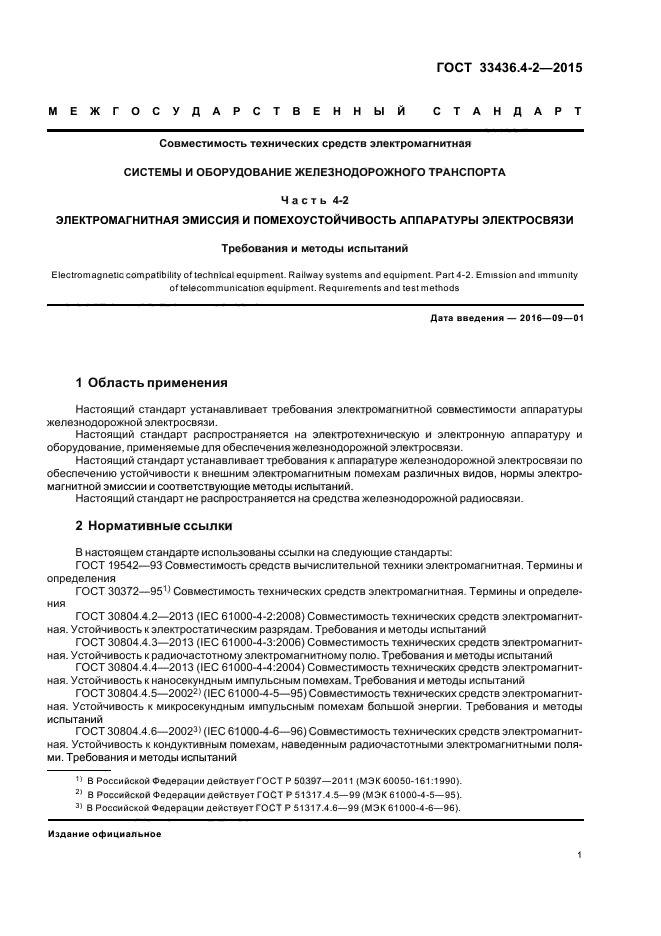 | Название рус.: | Совместимость технических средств электромагнитная. Системы и оборудование железнодорожного транспорта. Часть 4-2. Электромагнитная эмиссия и помехоустойчивость аппаратуры электросвязи. Требования и методы испытаний |