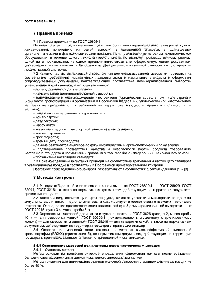 | Название рус.: | Сыворотка молочная деминерализованная. Технические условия |