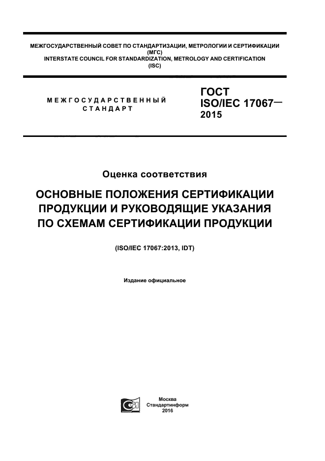 | Название англ.: | Conformity assessment. Fundamentals of product certification and guidelines for product certification schemes |