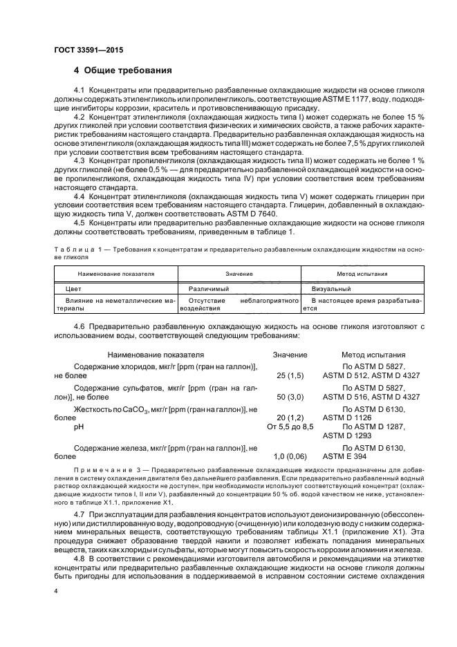 Настоящий стандарт устанавливает требования к охлаждающим жидкостям на основе этиленгликоля или пропиленгликоля, используемым в системах охлаждения автомобилей или других системах охлаждения с легкими условиями эксплуатации. Использование водных растворов охлаждающих жидкостей концентрацией от 40 % об. до 70 % об. или предварительно разбавленных охлаждающих жидкостей на основе гликоля (концентрацией не менее 50 % об.) без дальнейшего разбавления обеспечивает эффективную защиту от замерзания, закипания и коррозии