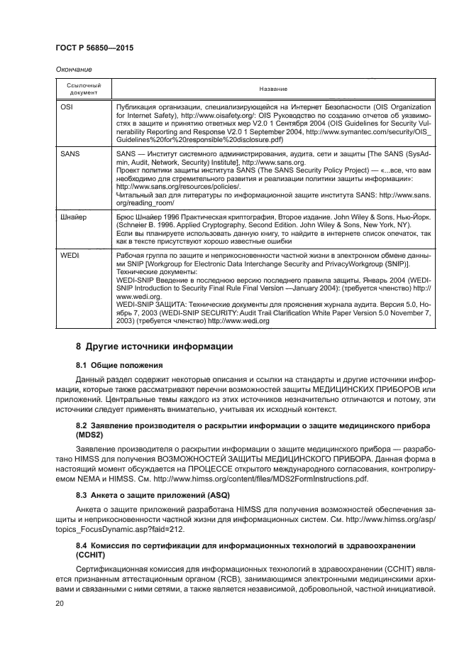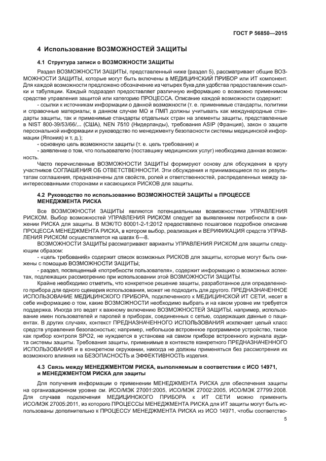 Настоящий стандарт формирует основной подход для выявления связанных с защитой возможностей и РИСКОВ, информация о которых необходима для управления РИСКОМ при подключении МЕДИЦИНСКИХ ПРИБОРОВ к ИТ СЕТЯМ, а также для представленного в МЭК 80001-1 взаимодействия (диалога) между заинтересованными организациями по вопросам защиты, которое сопровождает МЕНЕДЖМЕНТ РИСКА процесса соединения с ИТ СЕТЬЮ