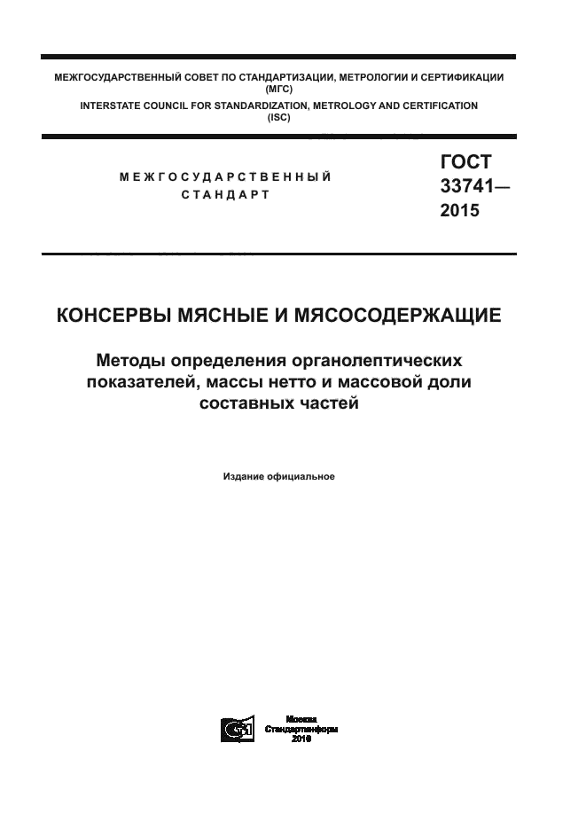 | Название англ.: | Meat and meat-containing cans. Methods for determination of organoleptic characteristics, net mass and component fraction of total mass |
