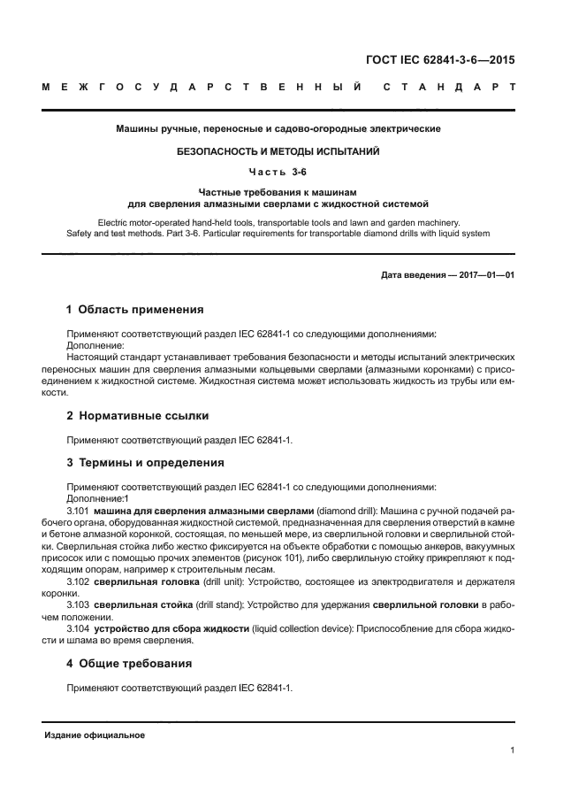 | Название англ.: | Electric motor-operated hand-held tools, transportable tools and lawn and garden machinery. Safety and test methods. Part 3-6. Particular requirements for transportable diamond drills with liquid system |