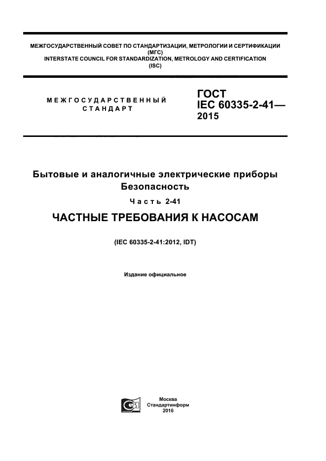 | Обозначение: | ГОСТ IEC 60335-2-41-2015 |