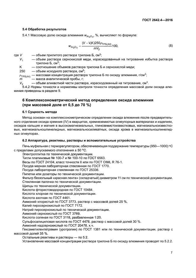 - комплексонометрический метод определения оксида алюминия без отделения оксида кремния (IV) (при массовой доле от 15 % до 99 %);