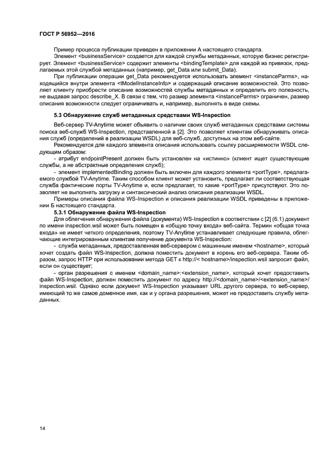 | Область и условия применения: | Настоящий стандарт устанавливает основные параметры процессов передачи метаданных по двунаправленной сети с целью обнаружения служб метаданных и получения описания возможностей служб метаданных |