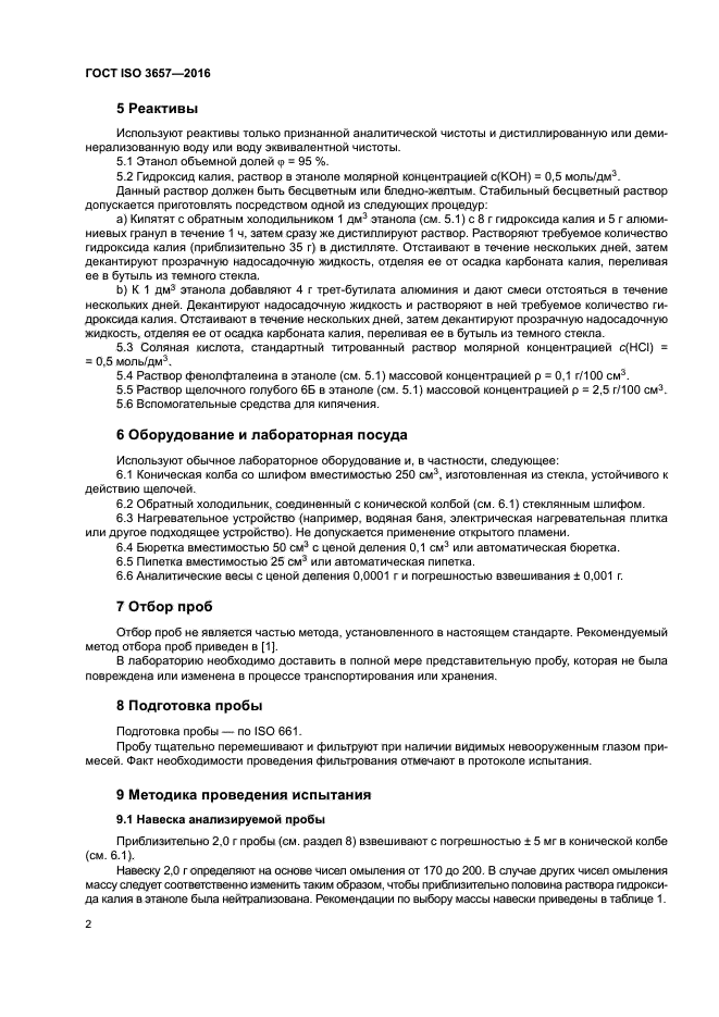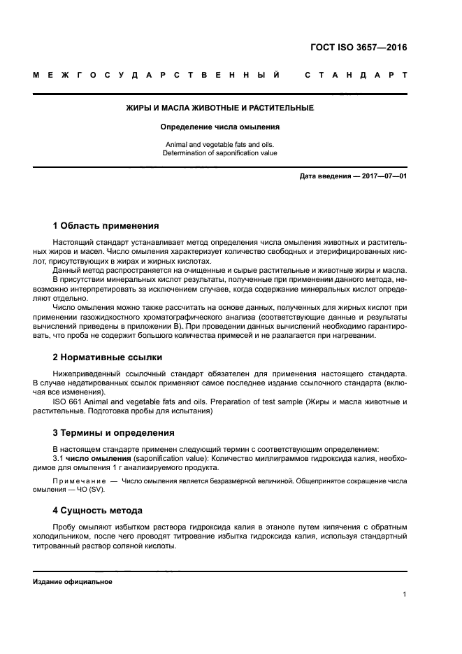 Настоящий стандарт устанавливает метод определения числа омыления животных и растительных жиров и масел. Число омыления характеризует количество свободных и этерифицированных кислот, присутствующих в жирах и жирных кислотах