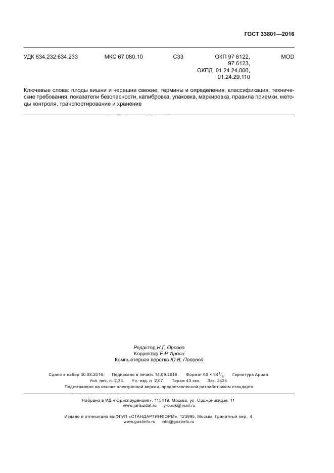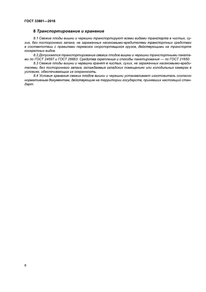 | Область и условия применения: | Настоящий стандарт распространяется на свежие плоды вишни (Prunus cerasus L.) и черешни (Prunus avium. L.) культурных сортов и гибридов, поставляемые и реализуемые в свежем виде для потребления |