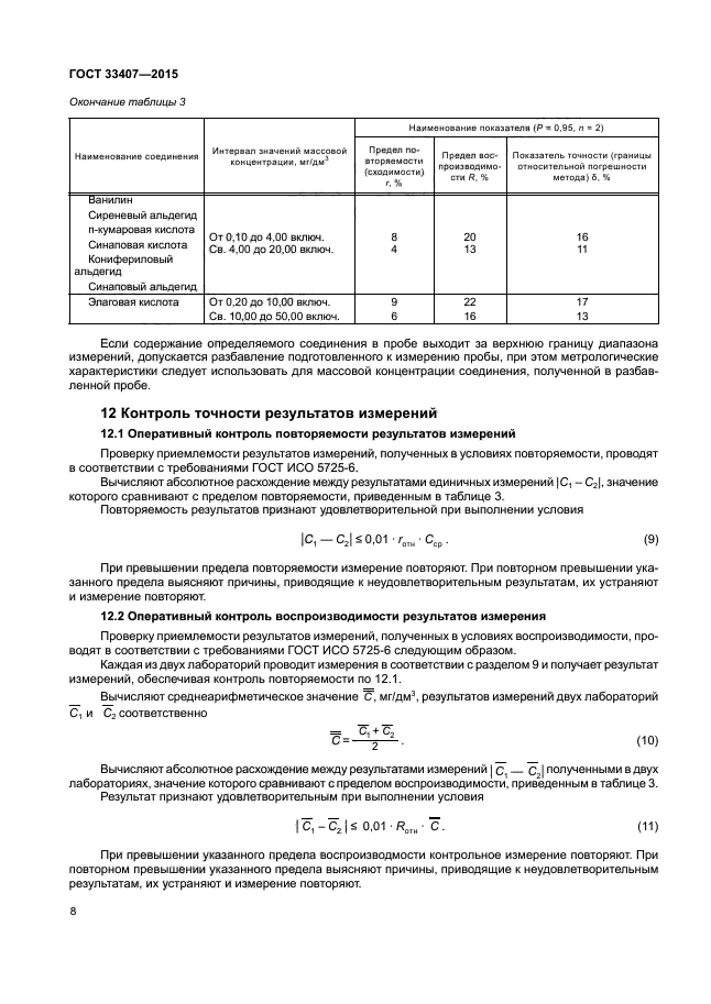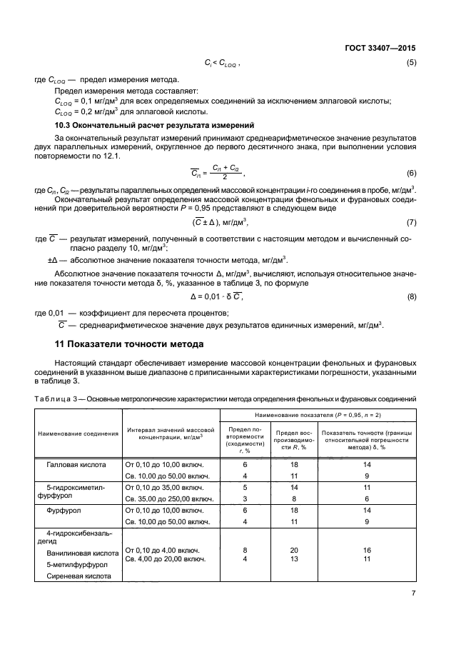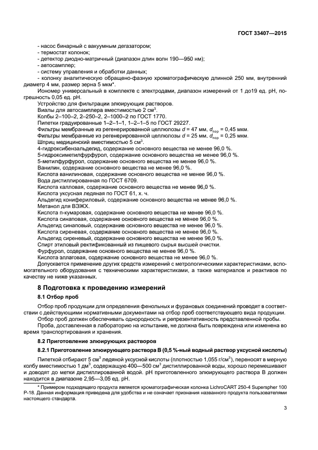 Перечень соединений, определяемых в соответствии с настоящим стандартом: галловая кислота, 5-гидроксиметилфурфурол, фурфурол, 4-гидроксибензаль-дегид, ванилиновая кислота, 5-метилфурфурол, сиреневая кислота, ванилин, сиреневый альдегид, п-кумаровая кислота, синаповая кислота, конифериловый альдегид, синаповый альдегид, эллаговая кислота