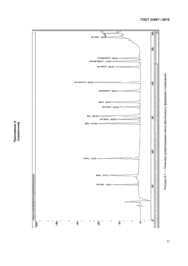 Перечень соединений, определяемых в соответствии с настоящим стандартом: галловая кислота, 5-гидроксиметилфурфурол, фурфурол, 4-гидроксибензаль-дегид, ванилиновая кислота, 5-метилфурфурол, сиреневая кислота, ванилин, сиреневый альдегид, п-кумаровая кислота, синаповая кислота, конифериловый альдегид, синаповый альдегид, эллаговая кислота |