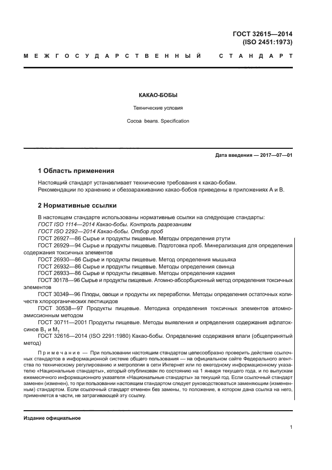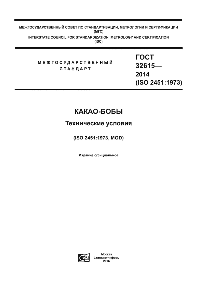 | Область и условия применения: | Настоящий стандарт устанавливает технические требования к какао-бобам |