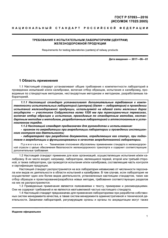 | Область и условия применения: | Настоящий стандарт устанавливает общие требования к компетентности лабораторий в проведении испытаний и/или калибровки, включая отбор образцов, испытания и калибровку, проводимые по стандартным методикам, нестандартным методикам и методикам, разработанным лабораторией |