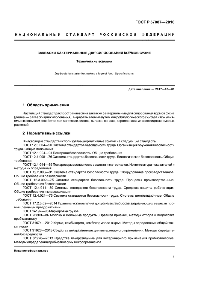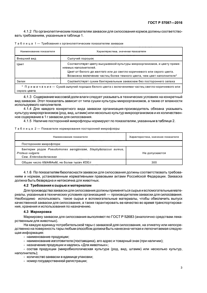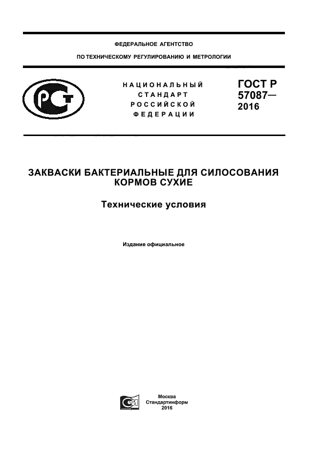 | Название рус.: | Закваски бактериальные для силосования кормов сухие. Технические условия |