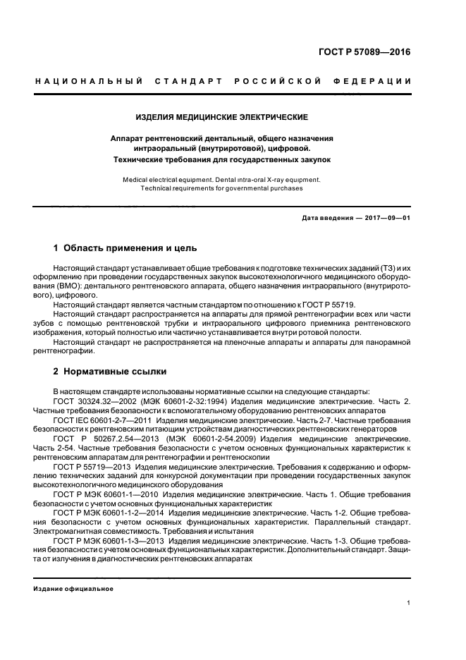 Настоящий стандарт распространяется на аппараты для прямой рентгенографии всех или части зубов с помощью рентгеновской трубки и интраорального цифрового приемника рентгеновского изображения, который полностью или частично устанавливается внутри ротовой полости.