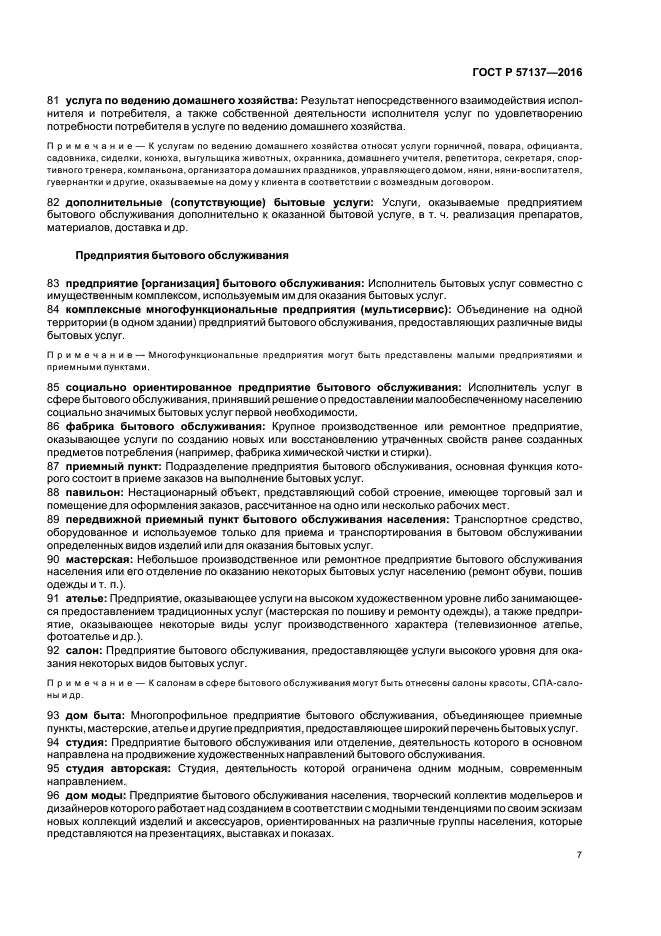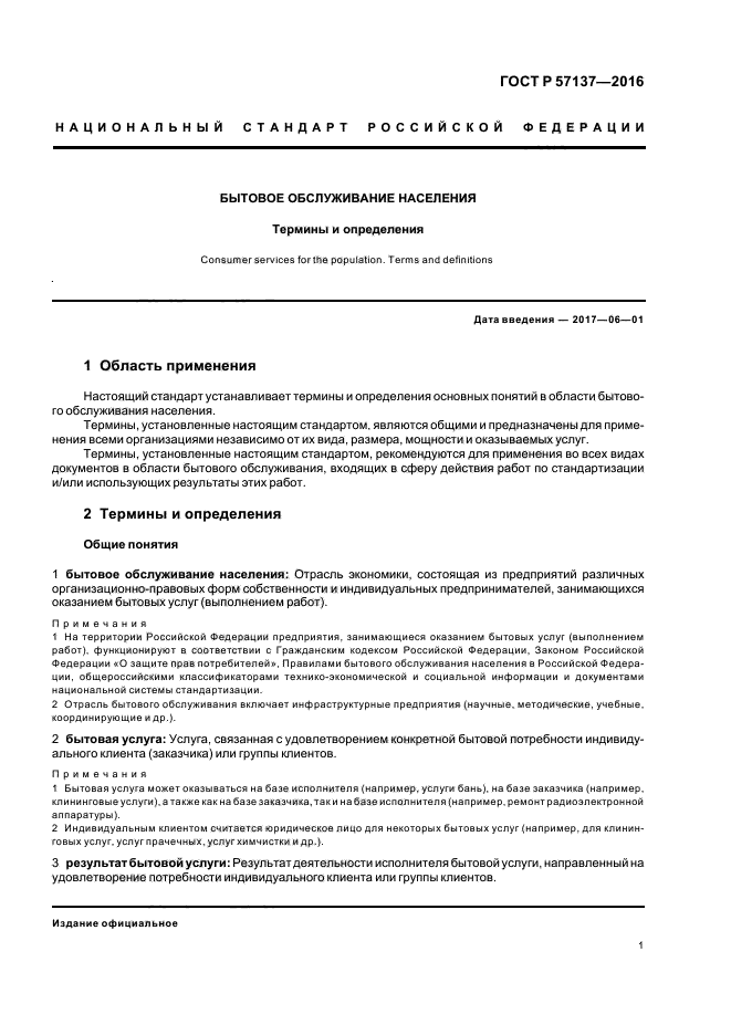 | Область и условия применения: | Настоящий стандарт устанавливает термины и определения основных понятий в области бытового обслуживания населения.