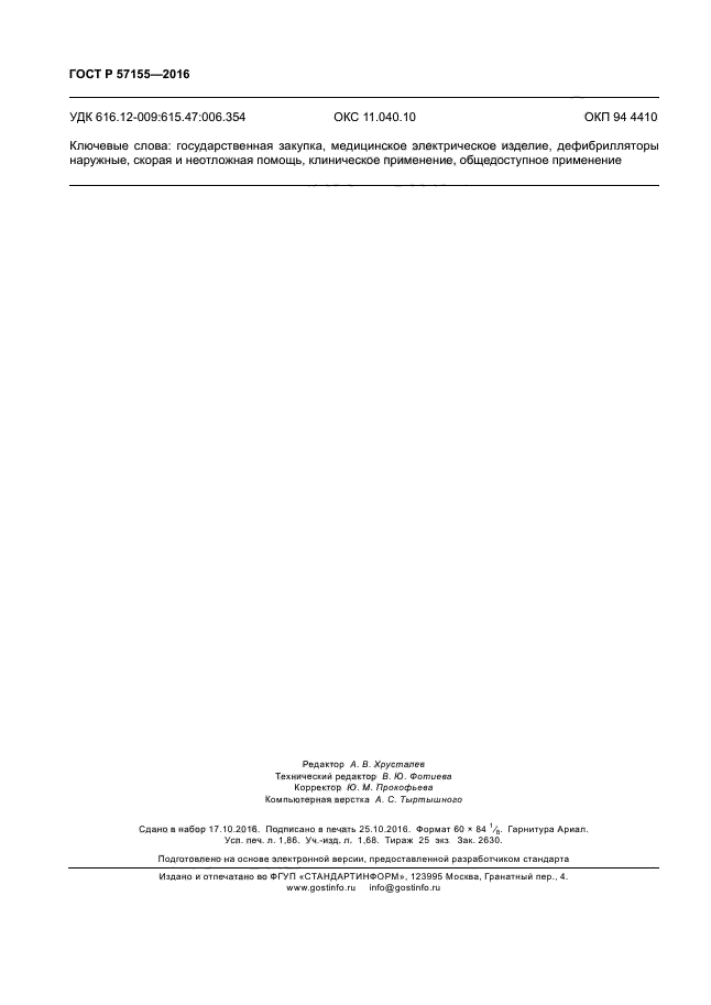 | Название рус.: | Изделия медицинские электрические. Дефибрилляторы наружные автоматические. Технические требования для государственных закупок |
