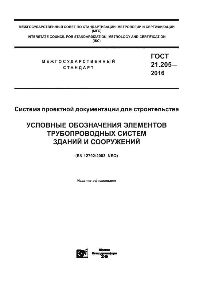 | Название рус.: | Система проектной документации для строительства. Условные обозначения элементов трубопроводных систем зданий и сооружений |