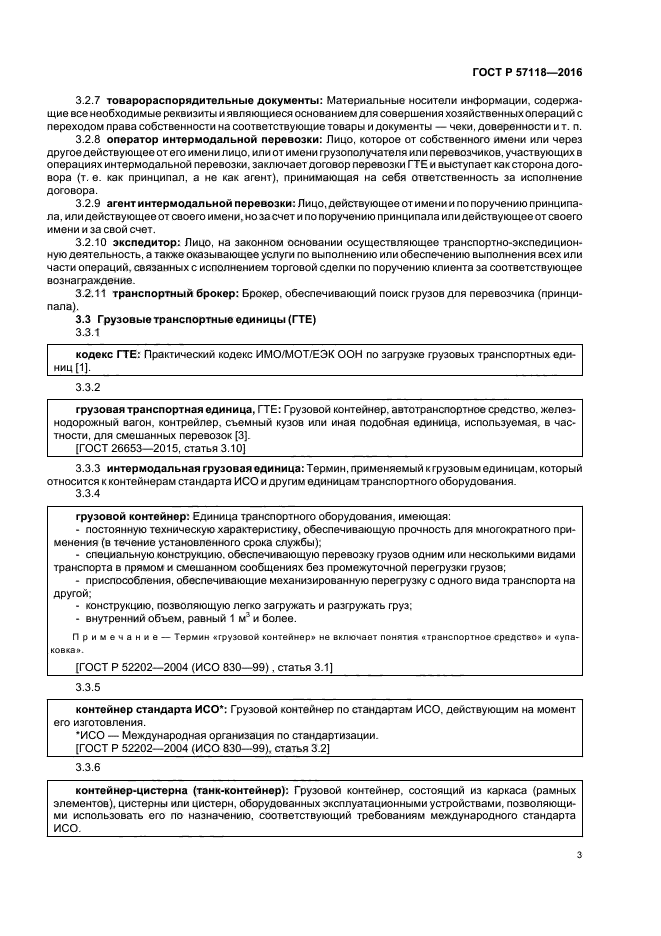 Стандарт распространяется на перевозки грузов всеми видами транспорта в рамках международной транспортной системы в случае использования грузовых транспортных единиц (ГТЕ). Термины, установленные настоящим стандартом, обязательны к применению во всех документах и литературе по транспортным услугам |