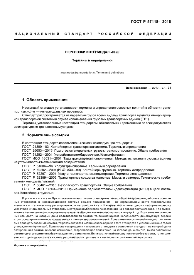 Стандарт распространяется на перевозки грузов всеми видами транспорта в рамках международной транспортной системы в случае использования грузовых транспортных единиц (ГТЕ).