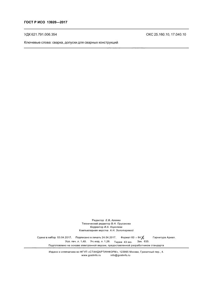 | Обозначение: | ГОСТ Р ИСО 13920-2017 |